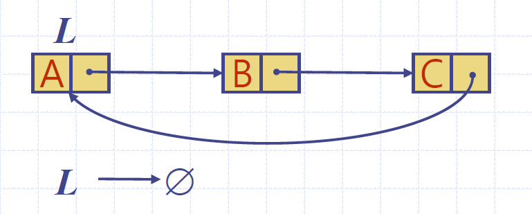 ์ํ ์ฐ๊ฒฐ๋ฆฌ์คํธ๋ ๋ง์ง๋ง ๋ ธ๋์ ๋งํฌ๊ฐ ํค๋๋ ธ๋์ ์ฃผ์๋ฅผ ๊ฐ๋ฆฌํค๋ ์ฐ๊ฒฐ๋ฆฌ์คํธ์ด๋ค.