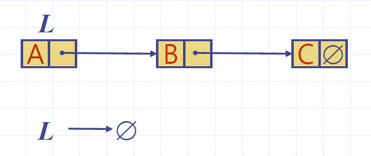 ๋ค์ ๋ ธ๋๊ฐ ์๋ ๊ฒฝ์ฐ๋ ๋๋งํฌ๋ฅผ ์ ์ฅํ๋ฉฐ, ์ ๊ทผ์ ์ ์ฒซ ๋ ธ๋ ์ฆ, ํค๋๋ ธ๋์ ์ฃผ์์ด๋ค.